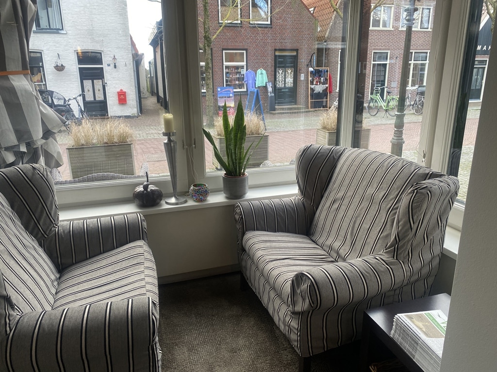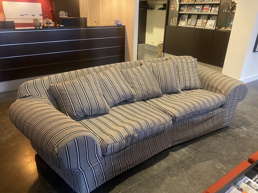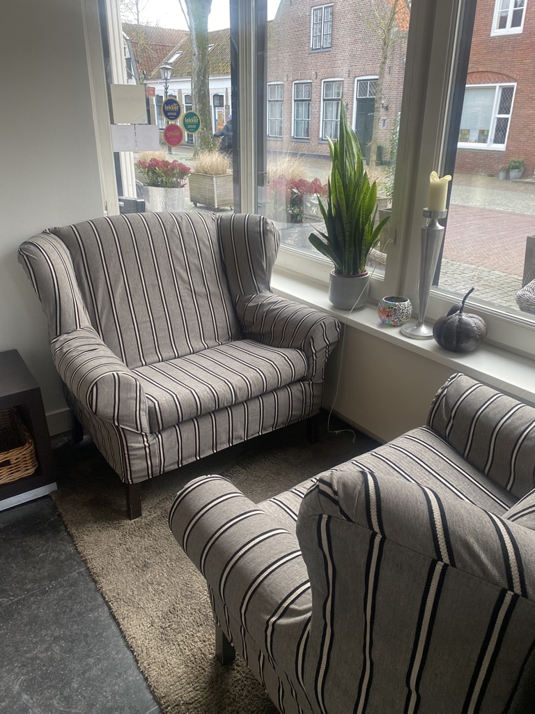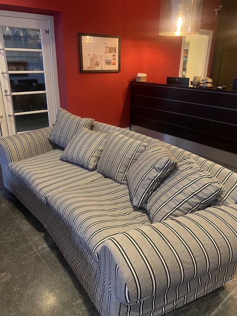 Ook de bank en stoelen in de receptie kregen een nieuwe hoes met stof van Gancedo.